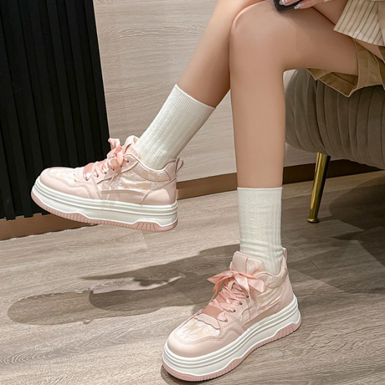女子らしさ満点の花柄刺繍厚底ハイカットスニーカー