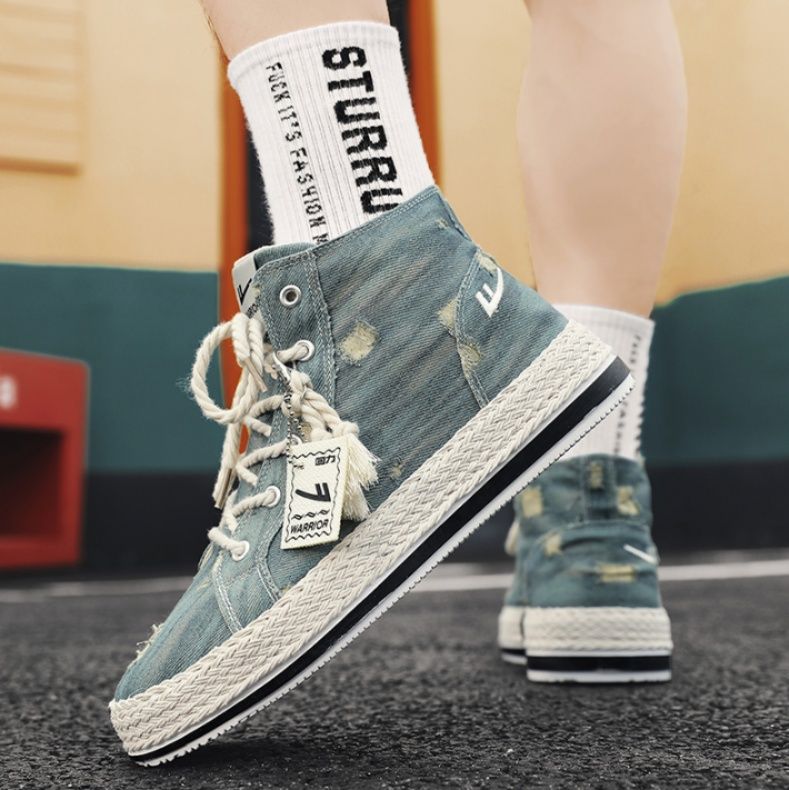 ヴィンテージデニム風メンズハイカットスニーカーでダサいを個性に変える厚底デザイン