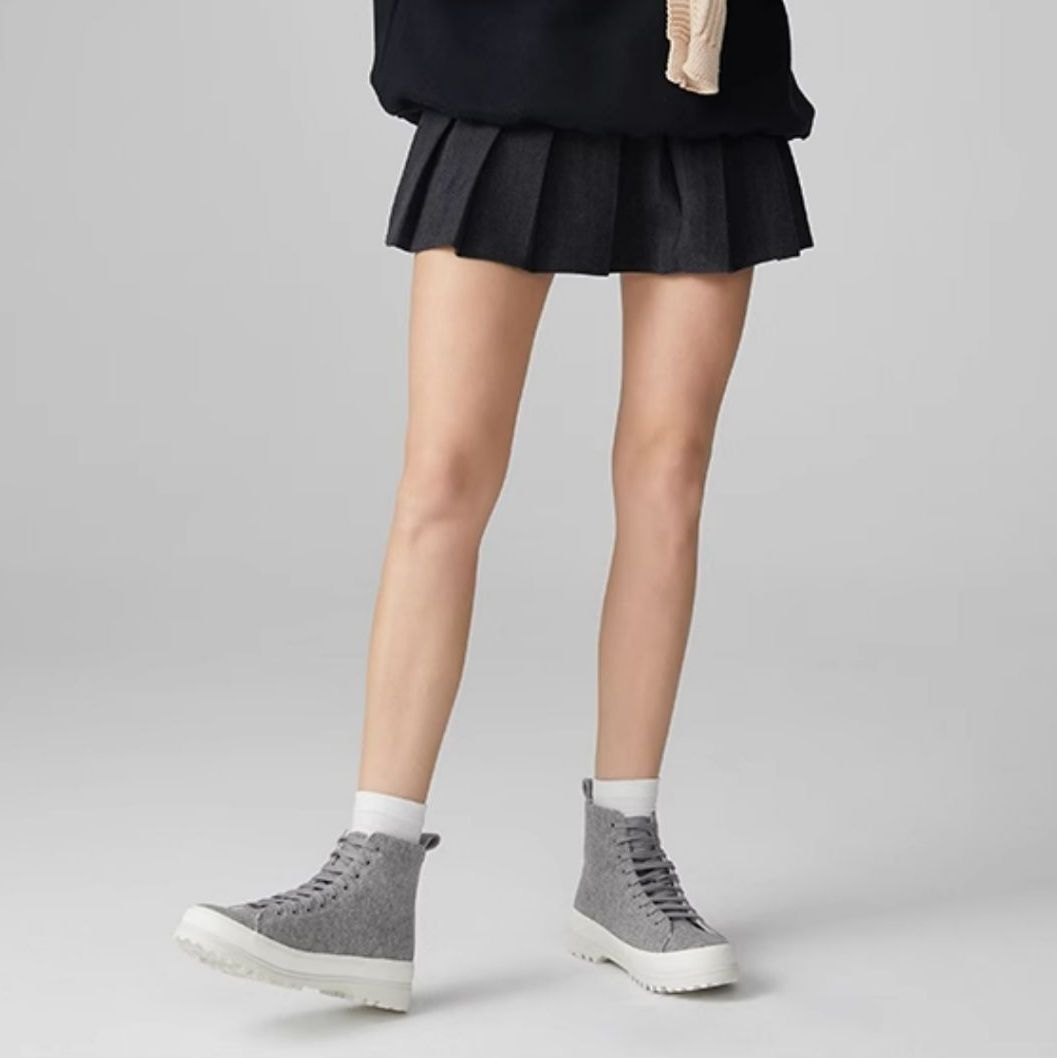 【モノトーンの着回し力】クリーンな白とシックなグレーの組み合わせは、どんなカラーのボトムスやトップスとも相性抜群で、着回し力が高いです。
