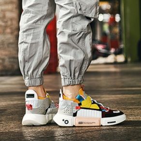 カジュアル: デニムやチノパンと合わせて、スニーカーのボリューム感をアクセントにした王道カジュアルスタイル。