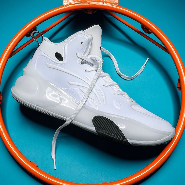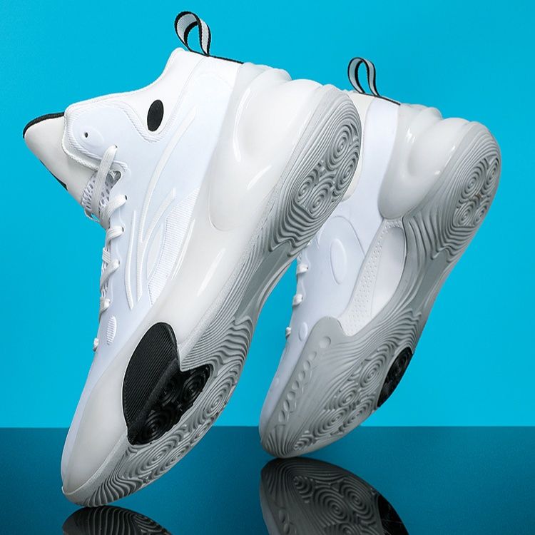 【モノトーンのコントラスト】 ホワイトとブラックの配色が、シューズの複雑なパネルラインを際立たせ、モダンでシャープな印象を与えます。