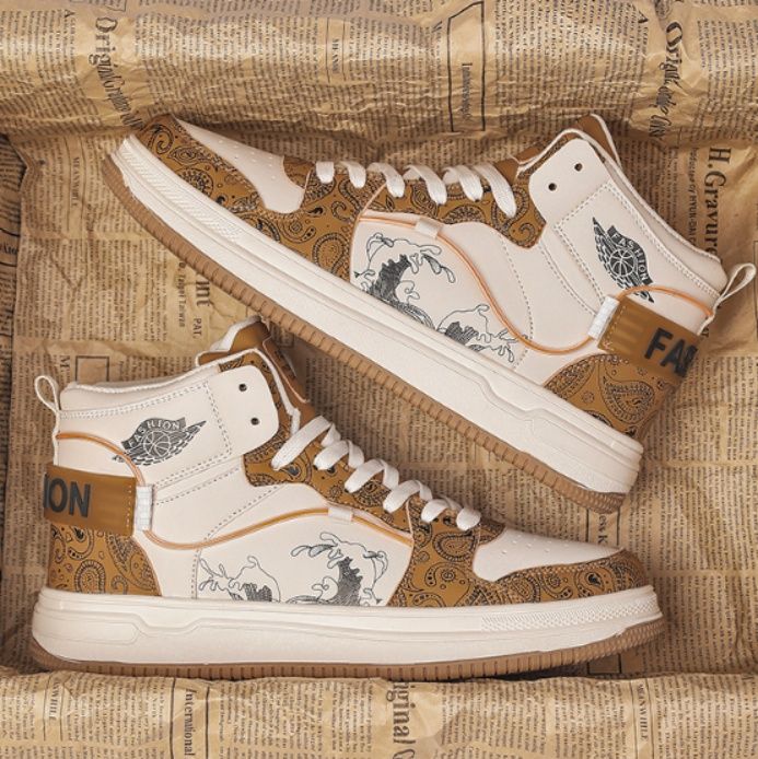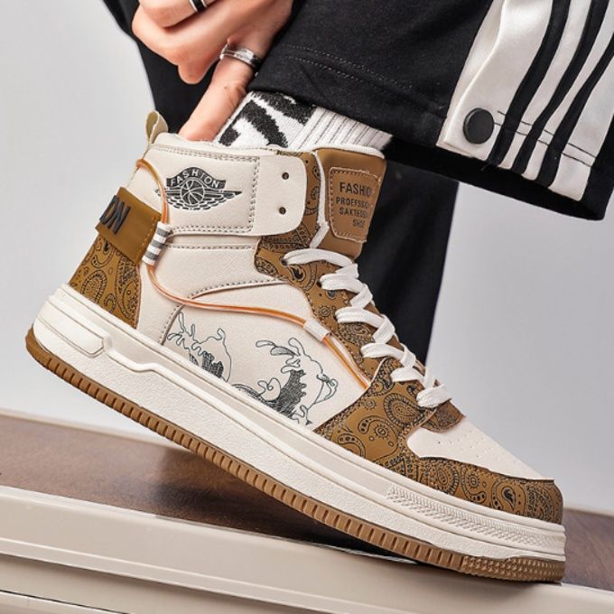 伝統的な文様と、現代的なシルエットの衝突。緻密なペイズリーが、バスケットシューズに新たな表情を刻む。