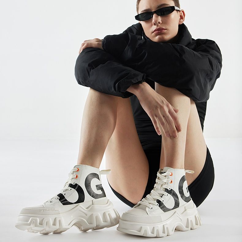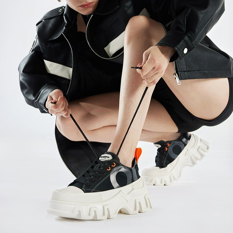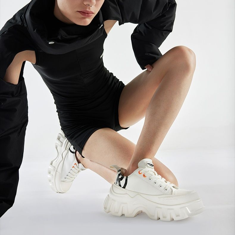個性的な凹凸のある厚底ソールがスタイリッシュな印象を演出